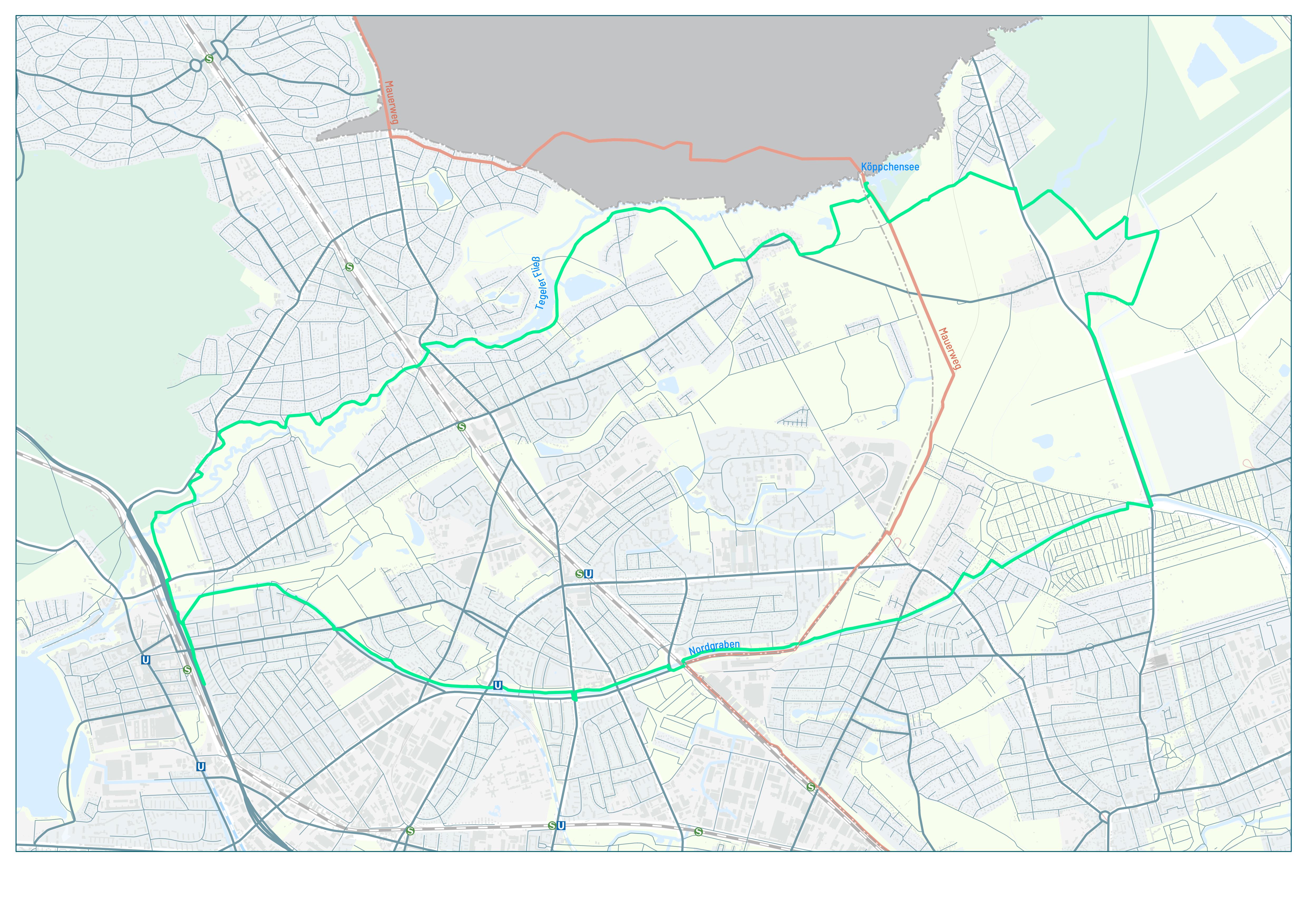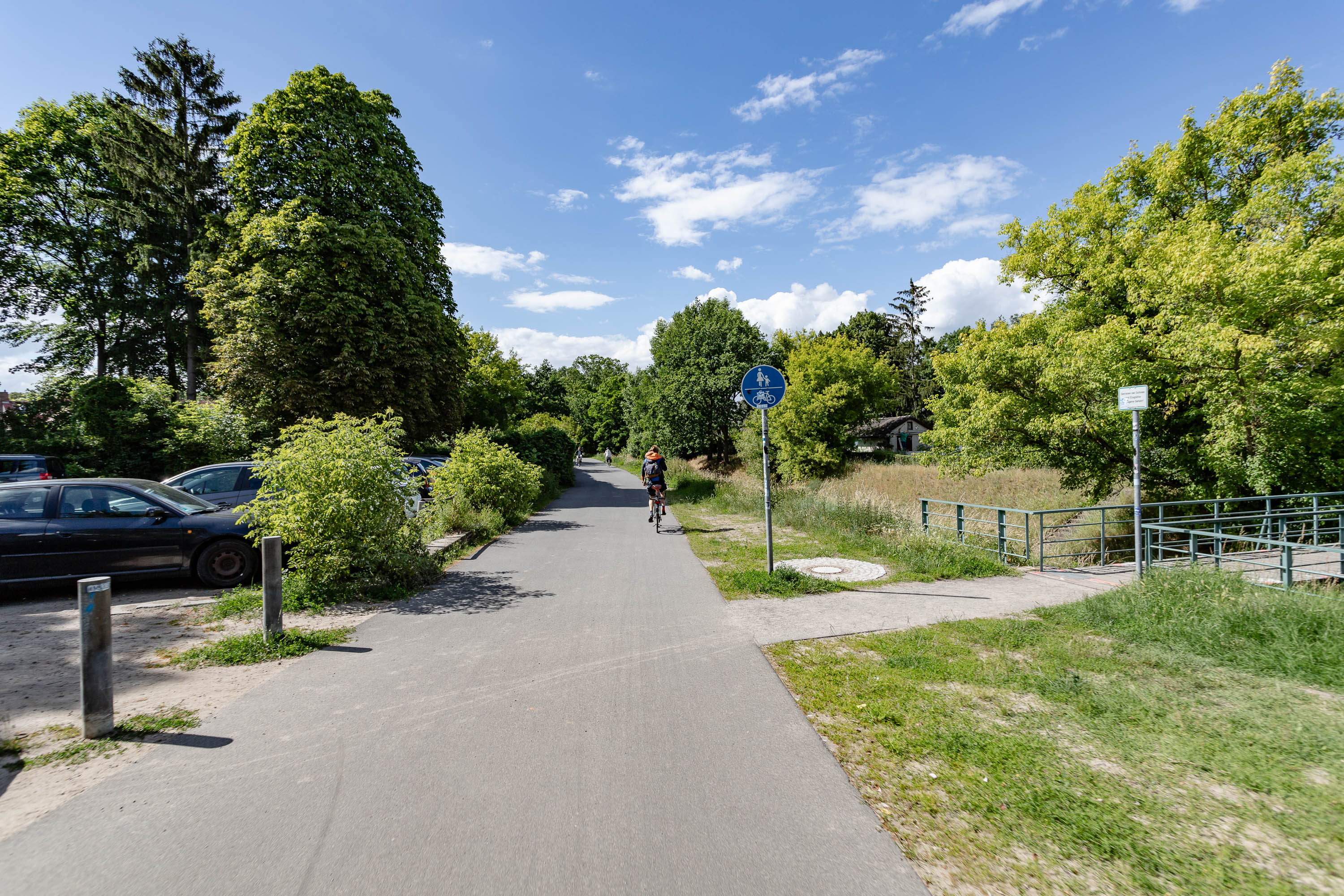 Am S-Bahnhof Tegel schwinge ich mich aufs Rad und fahre auf der autofreien Eschachstraße ein kleines Stück entlang der Bahngleise. Unter der Woche nutzen vor allem die Schüler*innen des nahegelegenen Humboldt-Gymnasiums die Grünanlage in ihren Pausen. Am Wochenende dagegen bevölkern Familien die Bänke am Spielplatz, junge Männer und Frauen hängen schwitzend an den Calisthenics-Geräten oder jagen dem Ball über den Bolzplatz hinterher. Nach wenigen Minuten erreiche ich die Wilhelm-Blume-Allee und es wird schlagartig ruhiger. Entlang des Friedhof Tegel führt die Allee auf nur 400 Metern zum Nordgraben.