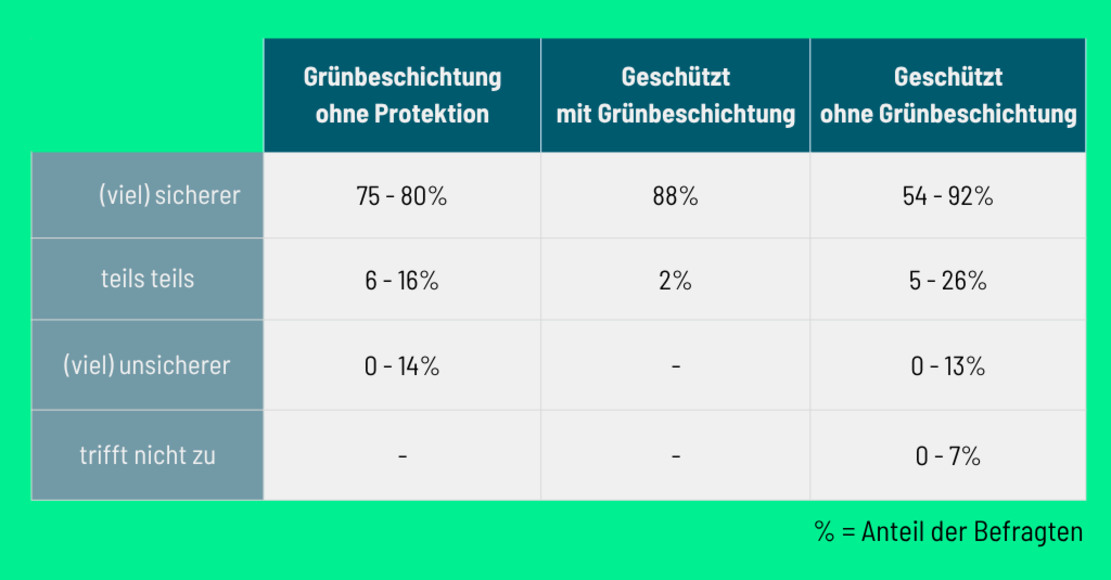 Wesentliche Ergebnisse zur Wirkung von Grünbeschichtungen