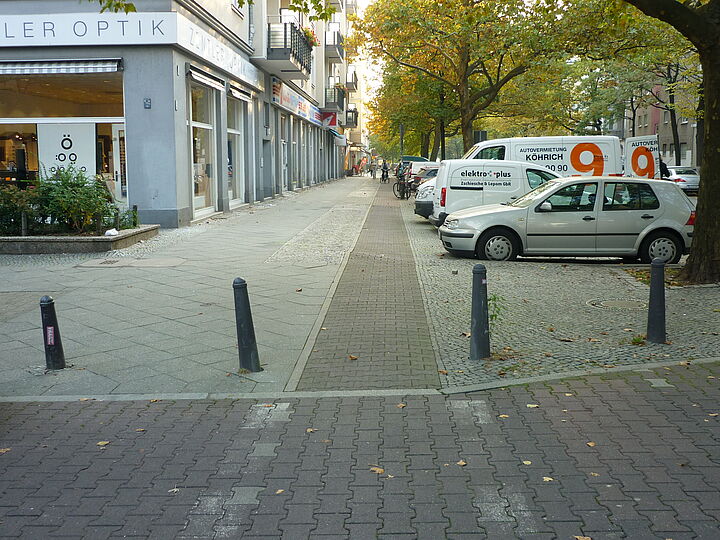 Die Detmolder Straße im Südosten von Wilmersdorf verbindet die Verkehrsachsen Blissestraße und Bundesstraße. Hier werden die vorhandenen Hochbordradwege saniert und verbreitert.
