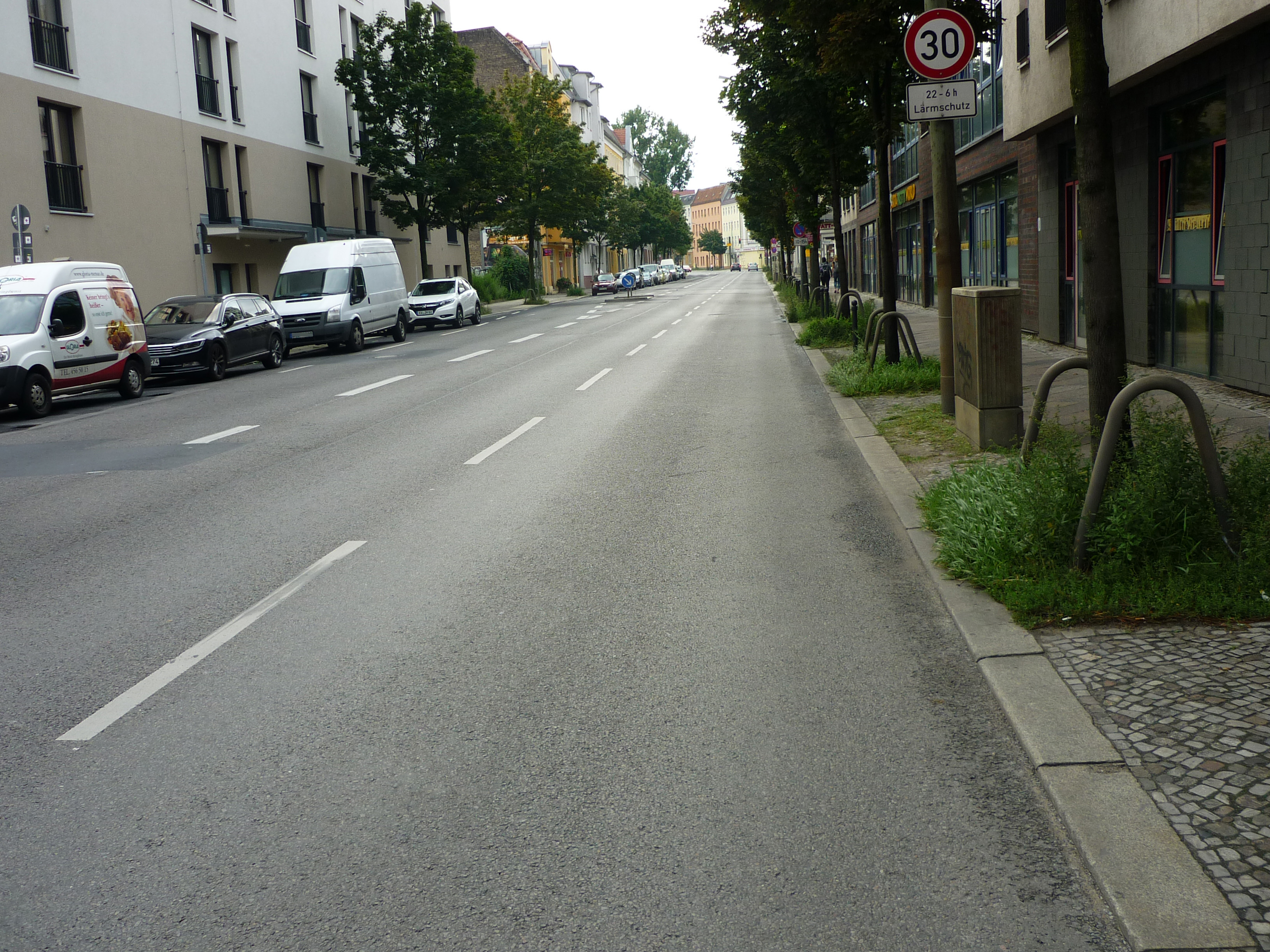 Straßenseite: z. T. Beidseitig, z. T. Einseitig