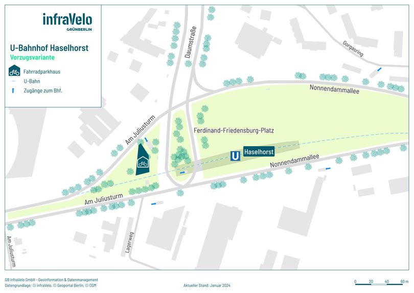Der U-Bahnhof Haselhorst gewinnt durch das neu entstehende Viertel „Waterkant“ und die Neubauten in der Wasserstadt Oberhavel für Rad-Pendler*innen an Bedeutung und der Bedarf an Fahrradabstellplätzen wird zunehmen. Ein Fahrradparkhaus mit freien und gesicherten Stellplätzen könnte den erwarteten großen Bedarf decken.