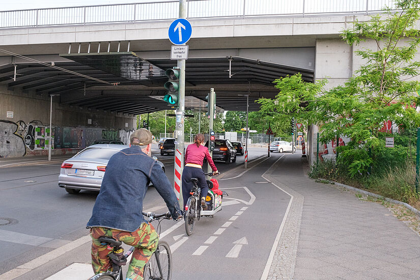 Die Karlshorster Straße ist ein Verbindungsstück zwischen Marktstraße und Hauptstraße am westlichen Rand Lichtenbergs. Die Straße liegt unter den Schienenüberführungen der Gleise zum Ostkreuz. Trotz des vielen Verkehrs und Tramschienen in der Straßenmitte gab keinen eigenen Raum für Radfahrende. Es wurden beidseitig baulich getrennte Radwege angelegt.