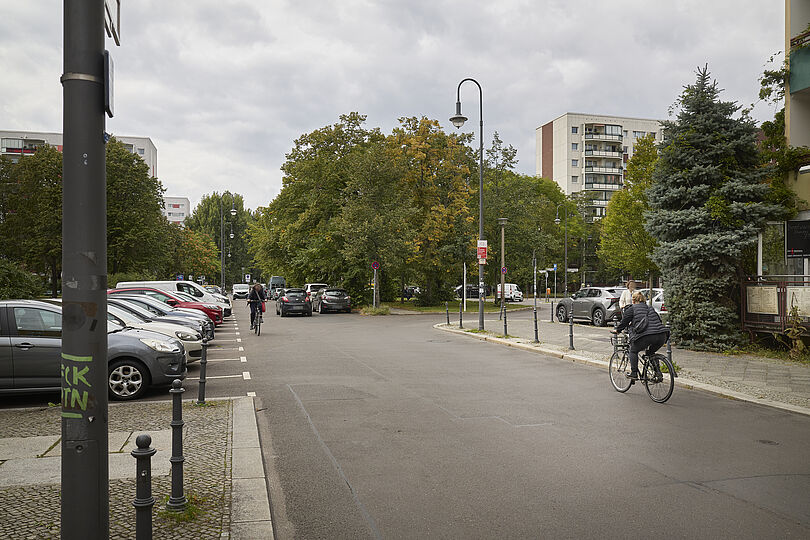 Es sind Abstellbereiche für Fahrräder, Lastenräder, E-Roller und Krafträder im Bereich der Parktaschen vorhanden, welche die Sichtbeziehungen an den Kreuzungen verbessern und die Gehwege freihalten.