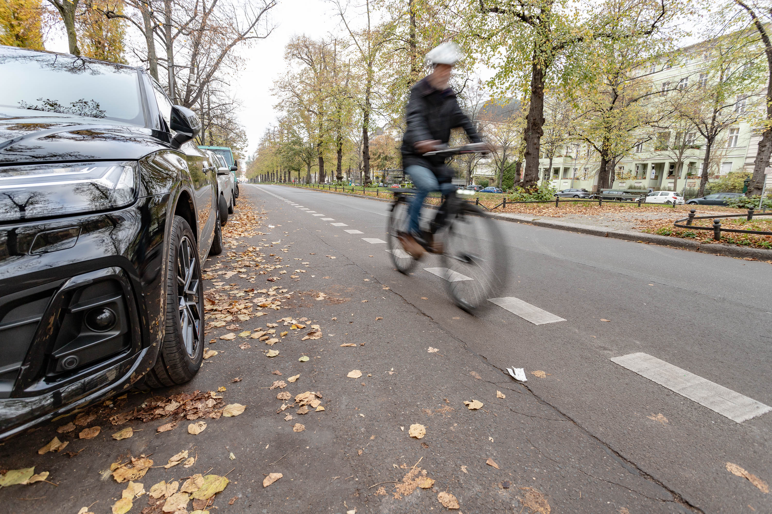 In der Charlottenburger Schloßstraße wird der Straßenraum im Sinne des Berliner Mobilitätsgesetzes zukunftsgerecht umgestaltet. Auf beiden Straßenseiten entstehen neue Radfahrstreifen, die die bisherigen Schutzstreifen ersetzen. Diese werden breiter angelegt und mit größerem Abstand zu parkenden Fahrzeugen markiert, um das Risiko von Dooring-Unfällen zu verringern. An allen Straßeneinmündungen wird der Radfahrstreifen im Sinne der Verkehrssicherheit rot markiert.