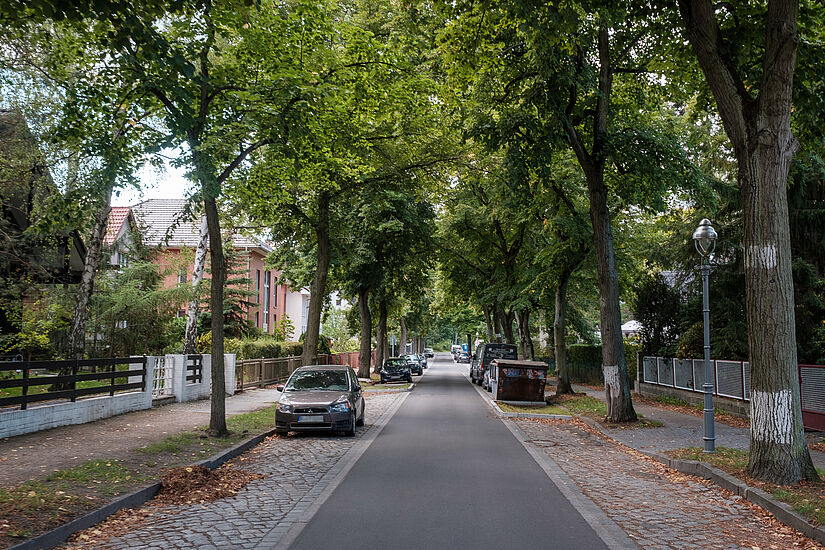 Die Schulzendorfer Straße ist eine ruhige Nebenstraße in Hermsdorf im Bezirk Reinickendorf. Zwischen Hermsdorfer Damm und Zieselweg wurde hier das Kopfsteinpflaster teilweise durch Asphalt ersetzt, um die Strecke für Radfahrende attraktiver zu machen. Die Breite des asphaltierten Fahrbahnteils beträgt 3 Meter (in Kreuzungsbereichen 4 Meter). Am Straßenrand parken größtenteils Autos. Hier wurde die Oberfläche aus Kopfsteinpflaster beibehalten. Die Asphaltierung schafft unter anderem eine attraktive Verbindung für Radfahrende in den Tegeler Forst und den Waldspielplatz Hermsdorf.