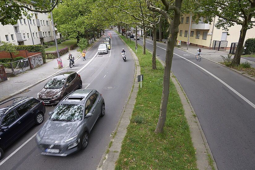 Als Hauptverkehrsstraße hat der Steglitzer Damm im Abschnitt zwischen der Sembritzki- und Attilastraße auf beiden Seiten einen geschützten Radfahrstreifen erhalten: Mit einer Breite von in der Regel 2,5 Meter. Für Radfahrer*innen entstand somit mehr Raum und Sicherheit, wo bisher kein geschützter Verkehrsraum bestand.