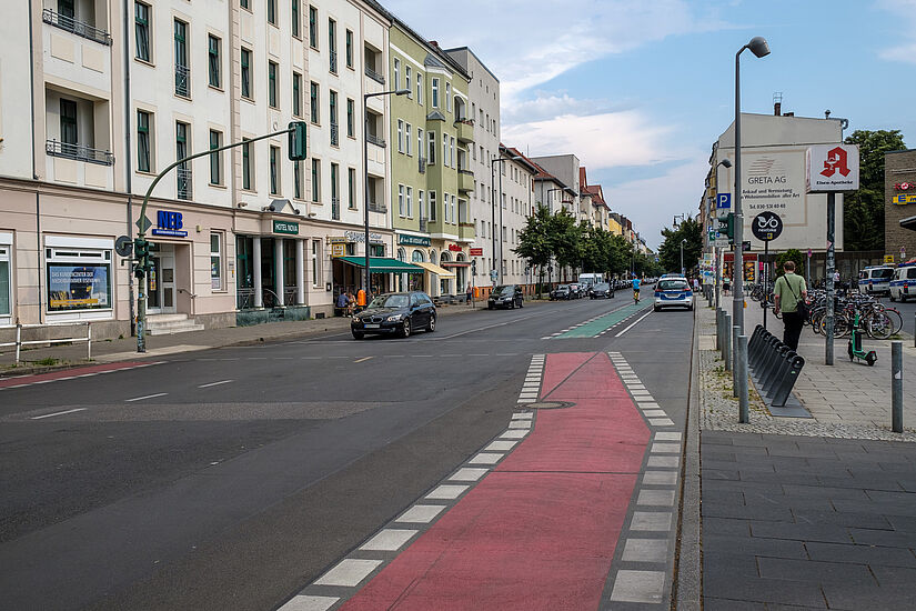 Hierfür wurden die bestehenden Radfahrstreifen und Schutzstreifen in beiden Straßen zwischen Egmontstraße und dem Ende des Bahnhofgebäudes Lichtenberg mit grüner Farbe beschichtet und, wo es möglich war, auf 2 Meter verbreitert. Zuvor wurden Schäden in der Asphaltdecke ausgebessert.