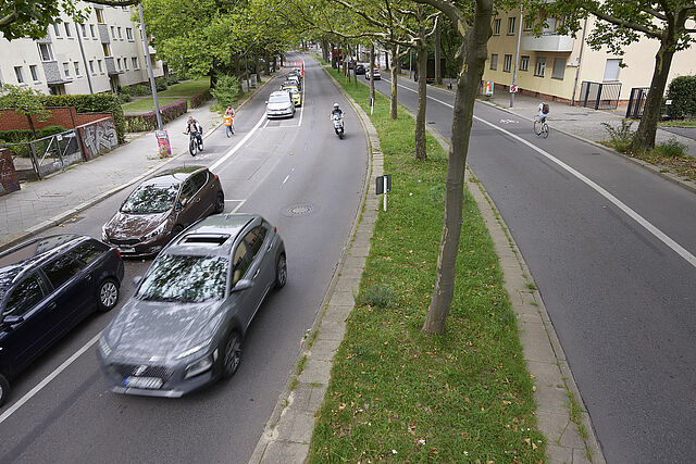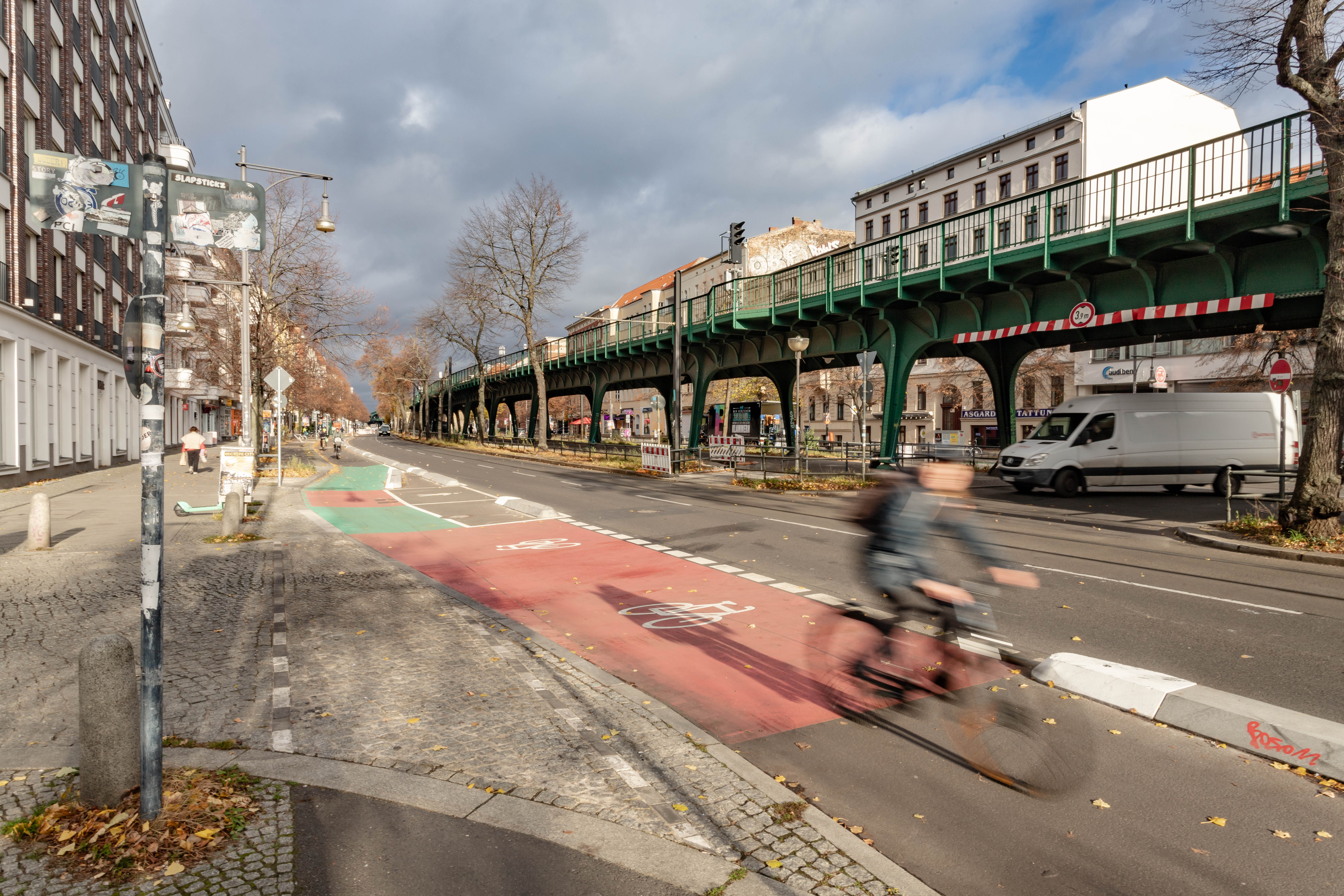 Radfahrstreifen schaffen einen eigenen Verkehrsraum für Fahrradfahrer*innen. Wenn sie farbig markiert oder durch Protektionselemente vom motorisierten Verkehr getrennt sind, macht das diese Wege für den Radverkehr besonders attraktiv. infraVelo setzt berlinweit ausgewählte Projekte um und verbessert damit kontinuierlich die Radverkehrsinfrastruktur.