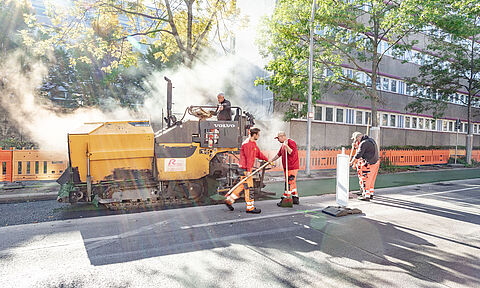 Gefärbter Asphalt in der Grellstraße eingebaut