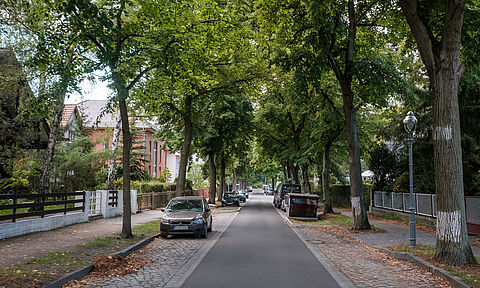 Die Schulzendorfer Straße ist eine ruhige Nebenstraße in Hermsdorf im Bezirk Reinickendorf. Zwischen Hermsdorfer Damm und Zieselweg wurde hier das Kopfsteinpflaster teilweise durch Asphalt ersetzt, um die Strecke für Radfahrende attraktiver zu machen. Die Breite des asphaltierten Fahrbahnteils…