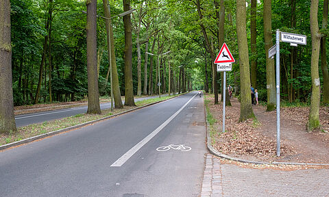 Der Staehleweg im nördlichsten Teil Reinickendorfs führt vom Hubertusweg durchs Waldgebiet Frohnau bis über die Landesgrenze nach Brandenburg. Hier wurde die Situation für Radfahrende verbessert, indem die Radwege saniert wurden.