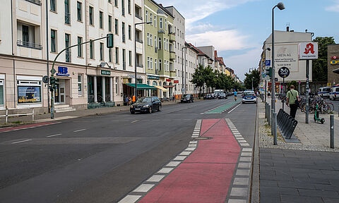 Auf der Skandinavischen Straße in Rummelsburg wurden zwischen Rosenfelder Straße und Egmontstraße die Schutzstreifen für Radfahrende durch Radfahrstreifen ersetzt, die in sicherem Abstand zu den parkenden Autos verlaufen. Eine grüne Beschichtung sorgt für bessere Sichtbarkeit der Radfahrenden und…