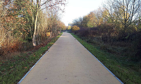 Zwischen der Hoyerswerdaer Straße und der Sebnitzer Straße in Hellersdorf wurde die unbefestigte Verbindung parallel der U-Bahngleise zu einem asphaltierten gemeinsamen Geh- und Radweg ausgebaut.