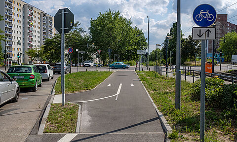 Die Bitterfelder Straße ist eine Hauptstraße in Marzahn. Zwischen Klettwitzer Straße und Schönhauser Straße wurde der bauliche Radweg auf nördlicher Straßenseite asphaltiert und zu einem 4 Meter breiten Zweirichtungsradweg ausgebaut. Für Radfahrende schafft dies eine Anbindung an den Radweg in der…