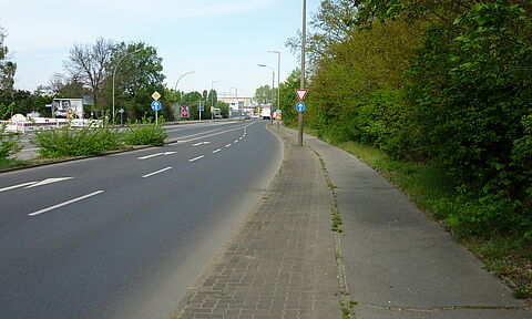 Die Müggelheimer Straße ist eine viel befahrene Hauptverkehrsstraße in Köpenick. Zwischen Wendenschloßstraße und Pablo-Neruda-Straße wurde auf südlicher Straßenseite ein Radfahrstreifen markiert.