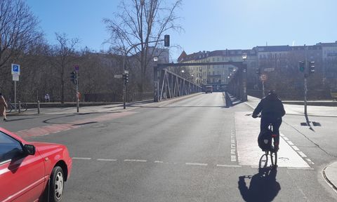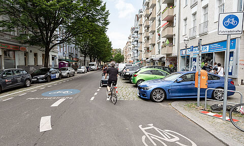 Die Handjerystraße in Friedenau wurde zwischen Varziner Straße und Bundesallee zur Fahrradstraße. Die Fahrbahnbreite für den Radverkehr sollte mindestens eine Breite von 4 Metern zzgl. Sperrflächen von mindestens 0,75 Meter zum ruhenden Verkehr am Fahrbahnrand haben, damit sich die…