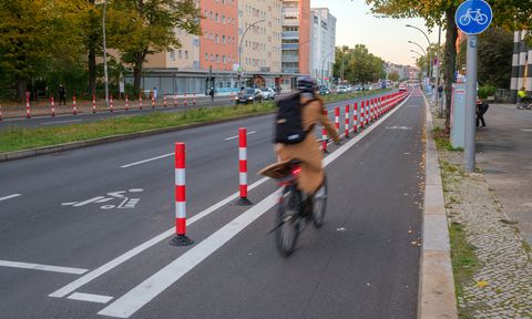 Am Mariendorfer Damm, zwischen Ullsteinstraße und Alt-Mariendorf, wurde der provisorisch gelb markierte Radfahrstreifen durch einen geschützten Radfahrstreifen verstetigt. Die Protektionselemente verhindern regelwidriges Anhalten und Parken auf dem Radweg. Der Lieferverkehr wird durch eingezeichnete…