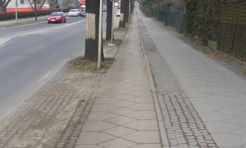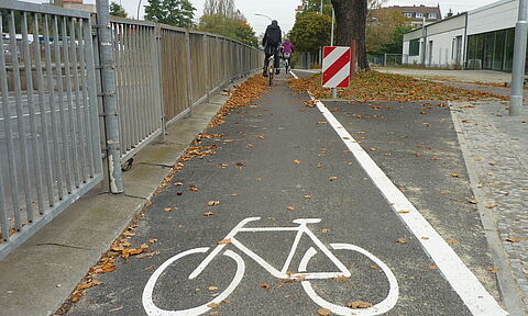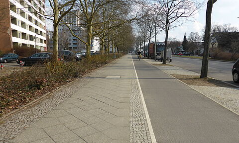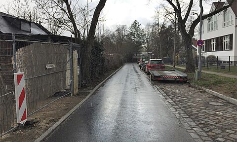 Die Anhaltinerstraße ist eine Nebenstraße in Zehlendorf und eine wichtige Verbindung für Radfahrende. Auf der Kopfsteinpflasterstraße wurde ein 2,75 Meter breiter Asphaltstreifen auf der Fahrbahn angelegt, damit das Radfahren hier angenehmer ist.