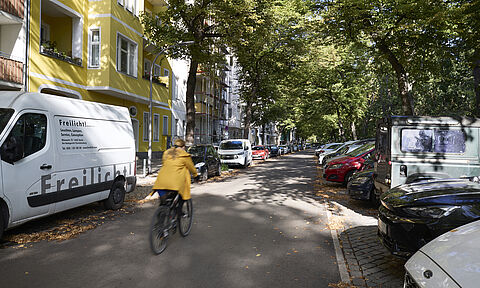 Die Rönnestraße ist eine Nebenstraße in Charlottenburg. Hier wurde das Kopfsteinpflaster durch Asphalt ersetzt, um eine attraktivere Verbindung für Radfahrende unter anderem zum S-Bahnhof Berlin-Charlottenburg zu schaffen.