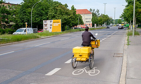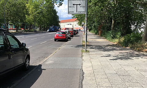 Die Kniprodestraße ist eine Hauptstraße im Süden Pankows. Hier wurden auf beiden Straßenseiten Schutzstreifen für Radfahrende angelegt.