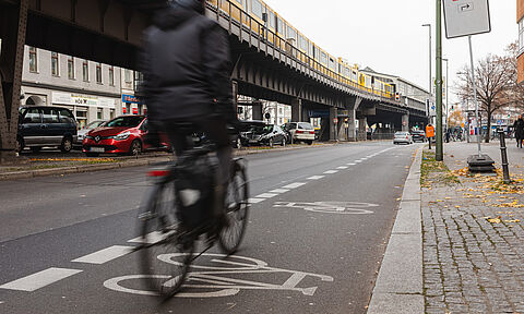 Die Oberbaumbrücke führt über die Spree und verbindet die Ortsteile Kreuzberg und Friedrichshain. Auf der Brücke sowie der Oberbaumstraße sind beidseitig geschützte Radfahrstreifen entstanden. Durch die bauliche Protektion bestehend aus Klebebordsteinen aus Beton sind die Radfahrenden hier sicher…