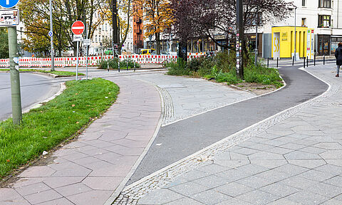 Die Frankfurter Allee ist eine Ost-West-Magistrale in Friedrichshain und eine viel genutzte Radverbindung. Auf dem Abschnitt zwischen Proskauer Straße und Frankfurter Tor wurde auf nördlicher Straßenseite der Hochbordradweg saniert und verbreitert.