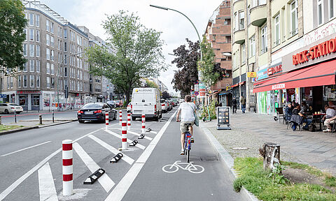 Die Kottbusser Straße in Kreuzberg verläuft vom Kottbusser Tor bis zum Landwehrkanal. Hier wurden 2020 temporäre Radfahrstreifen eingerichtet, um kurzfristig mehr Platz für Radfahrende zu schaffen. Da sich diese Maßnahme bewährt hat, wurden die Radfahrstreifen verstetigt und zu dauerhaften…