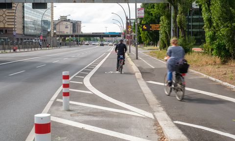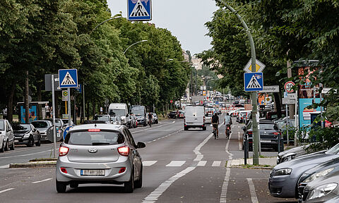 Die Petersburger Straße ist eine mehrspurige Hauptstraße im Norden Friedrichshains. Um kurzfristig mehr Platz für Radfahrende zu schaffen, wurden hier beidseitig temporäre Radfahrstreifen zwischen Bersarinplatz und Landsberger Allee errichtet, die bereits als dauerhafte Maßnahme vorgesehen sind.