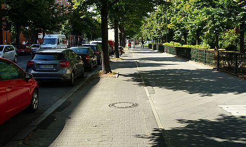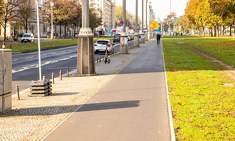 Die Frankfurter Allee ist eine Ost-West-Magistrale in Friedrichshain und eine viel genutzte Radverbindung. Auf dem Abschnitt zwischen Proskauer Straße und Frankfurter Tor wurde auf nördlicher Straßenseite der Hochbordradweg saniert und verbreitert.
