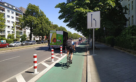 Die Möckernstraße in Kreuzberg verbindet Tempelhofer Ufer und Yorckstraße und dient unter anderem als Weg zum Park am Gleisdreieck. Zwischen Tempelhofer Ufer und Obentrautstraße wurde der bauliche Radweg auf östlicher Straßenseite erneuert.