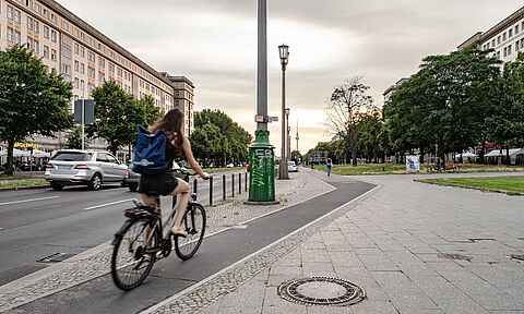 Die Karl-Marx-Allee ist eine breite Ost-West-Magistrale, die den Alexanderplatz in Mitte mit dem Frankfurter Tor in Friedrichshain verbindet. Auf dem Abschnitt zwischen dem Kino Kosmos nahe dem Frankfurter Tor und der Straße der Pariser Kommunen wurden die baulichen Radwege auf beiden Straßenseiten…