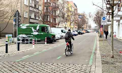 Auf der Schwedter Straße zwischen der Choriner Straße und der Bernauer Straße wurde eine Fahrradstraße eingerichtet. Zwischen den Hauptverkehrsstraßen hat der Radverkehr somit Vorrang und gibt auf mehr als einem Kilometer das Tempo vor, nur an der ampelgesteuerten Kastanienallee wird gewartet. Um…
