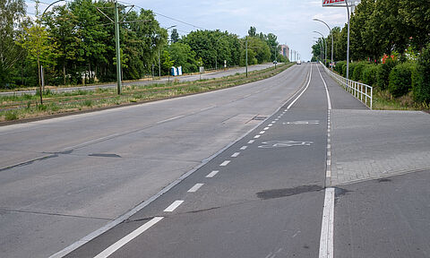 Die Rhinstraße ist eine breite Hauptstraße in Lichtenberg und verbindet die Ortsteile Alt-Hohenschönhausen und Friedrichsfelde. Auf der westlichen Straßenseite wurde der bauliche Radweg saniert und verbreitert.