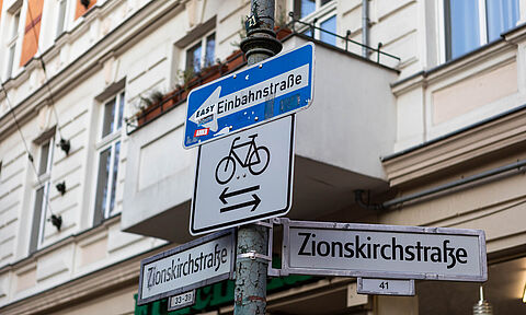 Der Zionskirchplatz mit der gleichnamigen Kirche in seiner Mitte liegt im im Osten des Bezirks Mitte. Die rund um den Platz verlaufende Zionskirchstraße ist eine Einbahnstraße, die 2018 für den Radverkehr in beide Richtungen freigegeben wurde. Zuvor mussten Radfahrende entweder Umwege in Kauf nehmen…